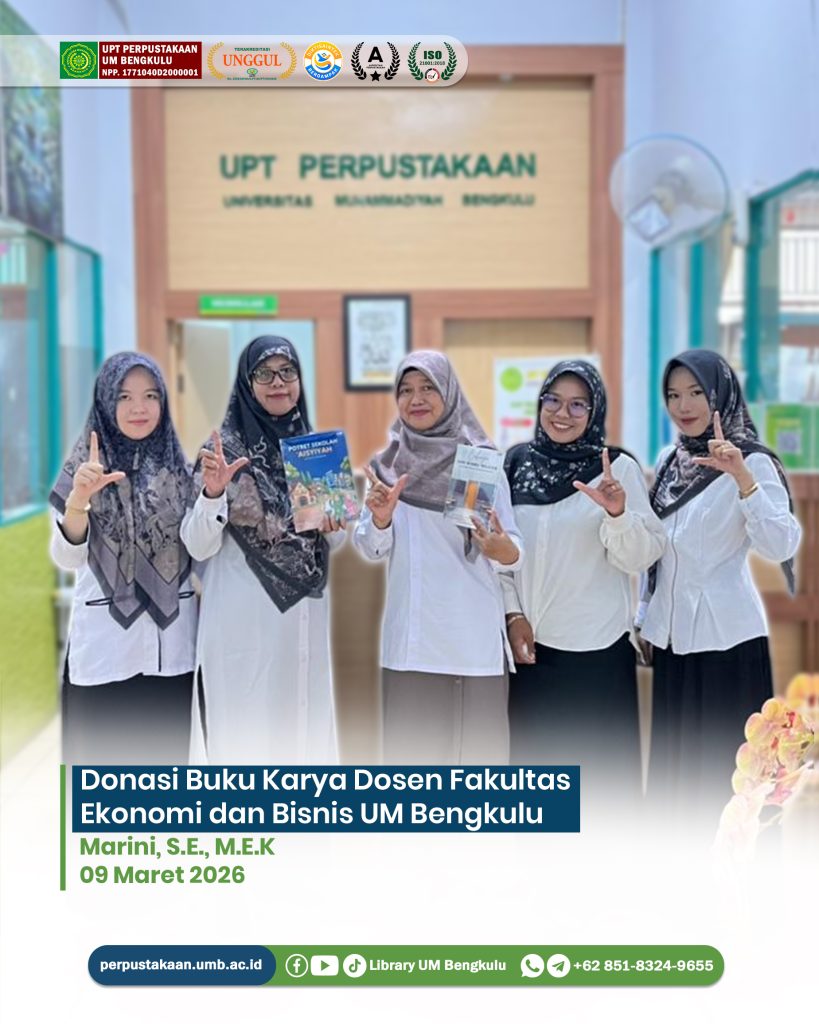 Terimakasih atas sumbangan buku yang diberikan oleh Dosen Universitas Muhammadiyah Bengkulu Ibu Marini, S.E., M.E.K Dosen Fakultas Ekonomi dan Bisnis Universitas Muhammadiyah Bengkulu pada Rabu, 09 Maret 2026.