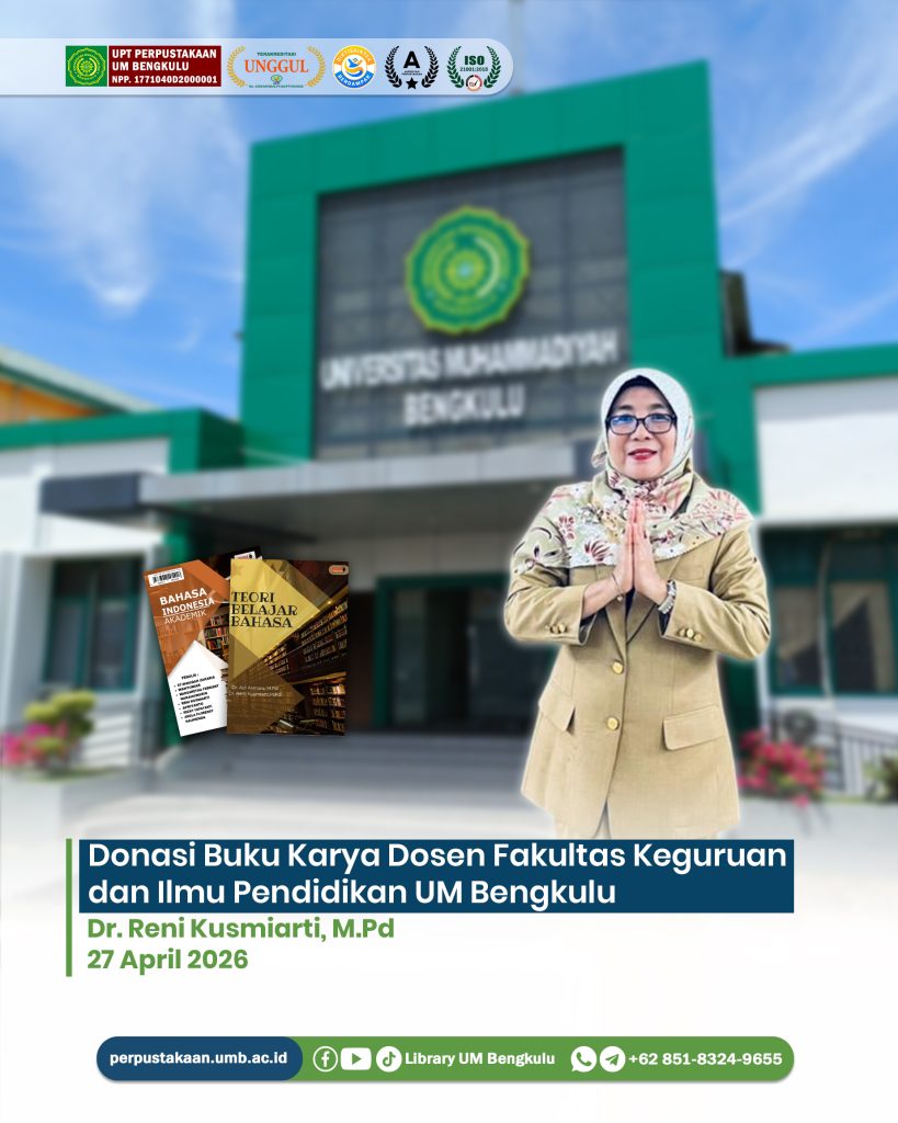 Terimakasih atas sumbangan buku yang diberikan oleh Ibu Dr. Reni Kusmiarti, M.Pd. Dosen Fakultas Keguruan dan Ilmu Pendidikan Universitas Muhammadiyah Bengkulu pada Senin (27/04/2026).